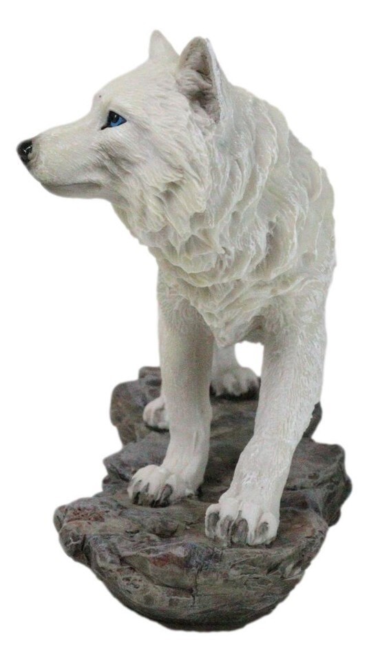 ? This Snow Wolf Figurine is made of designer resin that is intricately sculpted with attention to detail. It is then hand painted and polished individually.