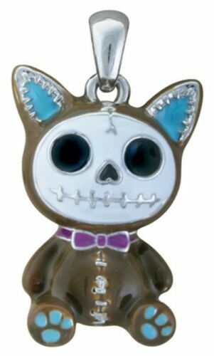 Ebros Furry Bones Voodoo Mocha Cat Mao Mao Pewter Necklace Pendant Jewelry