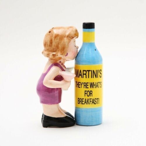 MARTINI FOR LADY BREAKFAST ATTRACTIVES CERAMIC MAGNETIC SALT PEPPER SHAKERS