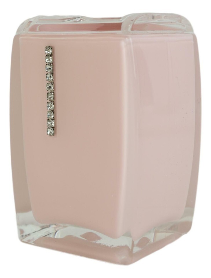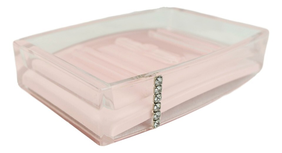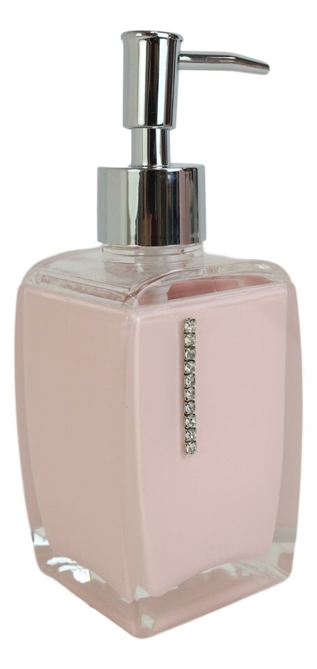 ? Our bathroom set is made of durable acrylic plastic, sealed tight to prevent water leakage/spillage from the inside. Each bathroom piece features solid colors of your choice, embellished with lavish austrian crystals. The metallic parts are made of stainless steel.