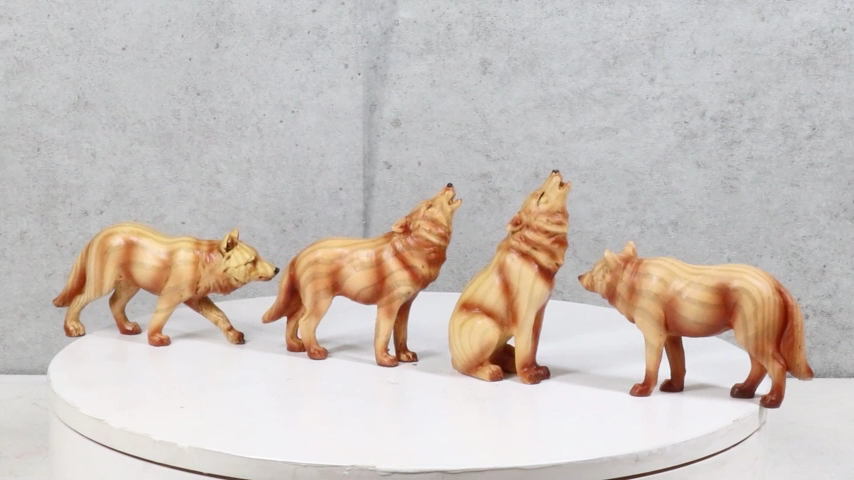? These wolf figurines are made of designer composite resin, hand painted and polished individually. The art of creating a wooden finish to resin is a recently discovered technique which gives you the best of both worlds; the rustic natural feel and look of wood and the sculptural details that can only be achieved with resin. This sculpture will look new for many years to come, and the best part is it will not fade or crack/split (due to dryness) like wood does over a period of time.