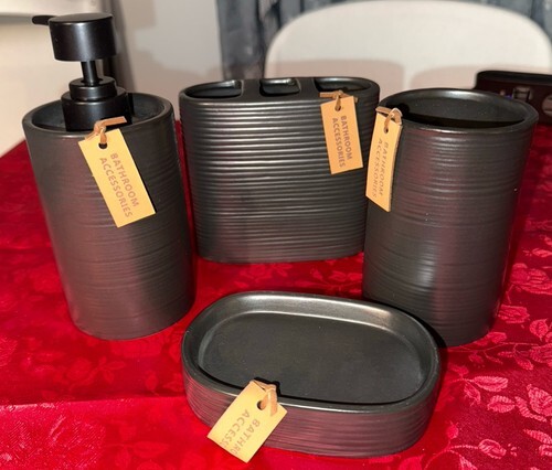 ? This listing selection is for 1 each of Liquid Soap Pump Dispenser, Tumbler Cup, Soap Dish and Toothbrush Holder.