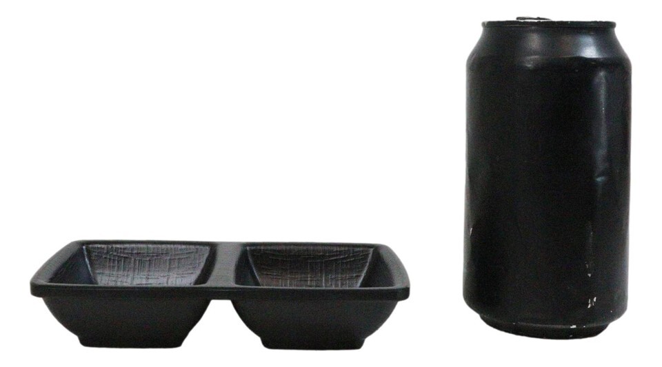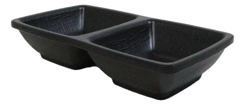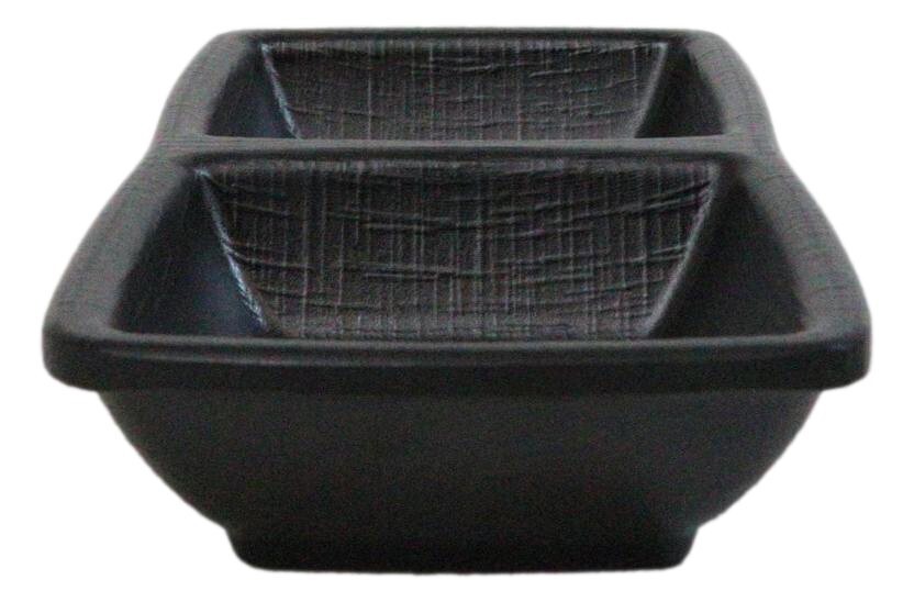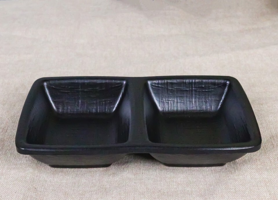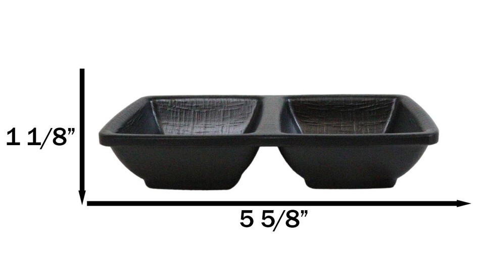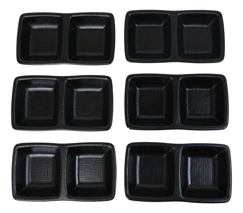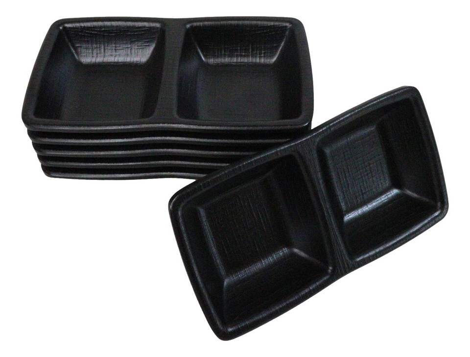 Pack Of 6 Black Silk Melamine 2 Partition Condiment Sauce Dipping Bowl or Dishes