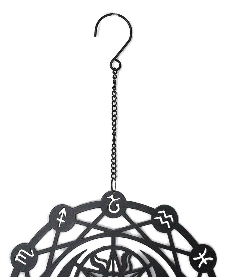 ? Elevate your space with the Phases Of The Moon Zodiac Astrology Constellations Dreamcatcher, a striking piece crafted from black-coated steel. This enchanting wall decoration seamlessly blends celestial beauty with modern design, featuring intricately detailed phases of the moon and zodiac constellations. Perfect for adding a touch of mystical charm to any room, it not only enhances your decor but also serves as a unique focal point.