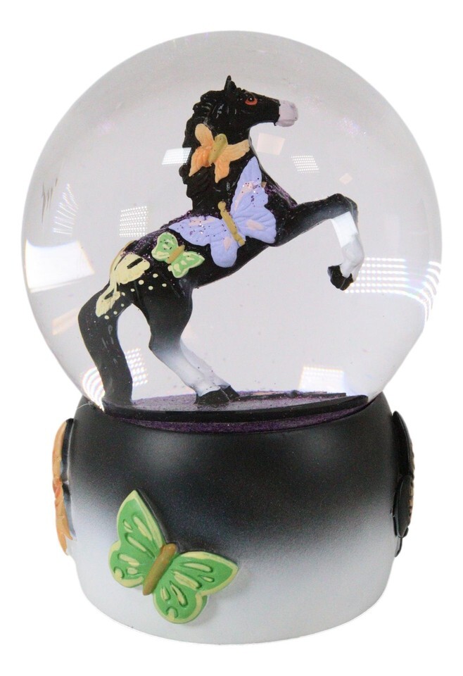 Trail Of Painted Ponies Western Black Beauty Butterflies Horse Water Globe Decor