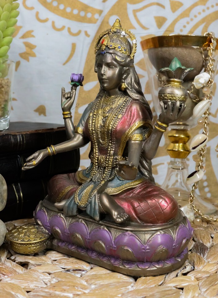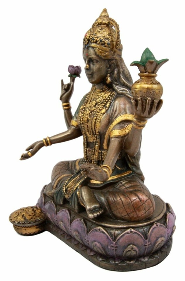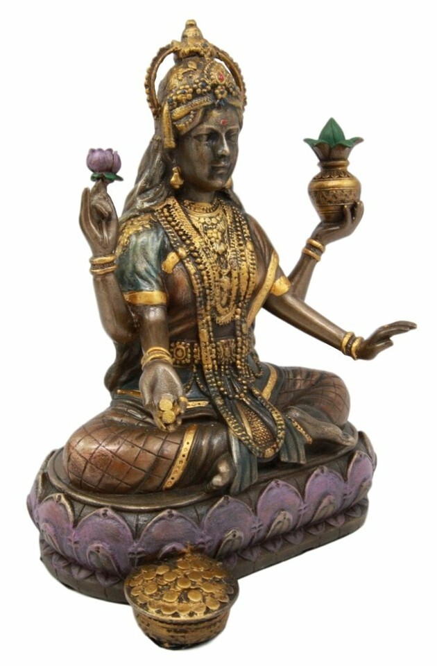 Hindu Goddess Of Home Fortune Prosperity Lakshmi Shakti Of Vishnu Figurine 6.5"H