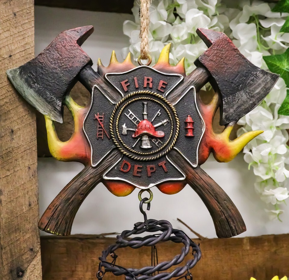 Ebros Maltese Cross Crest With Crossed Fire Fighter Axe Fireman Wind Chime Decor