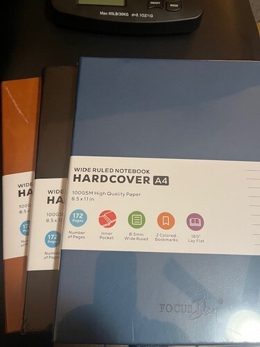 ? This Journal measures 8.25"Hx5.75"Wx0.75"D, weighing about 1 pound.