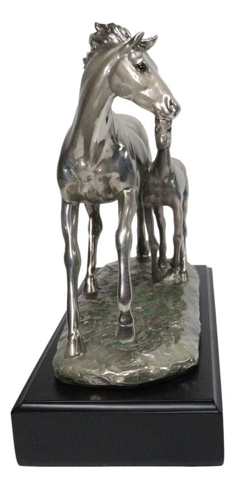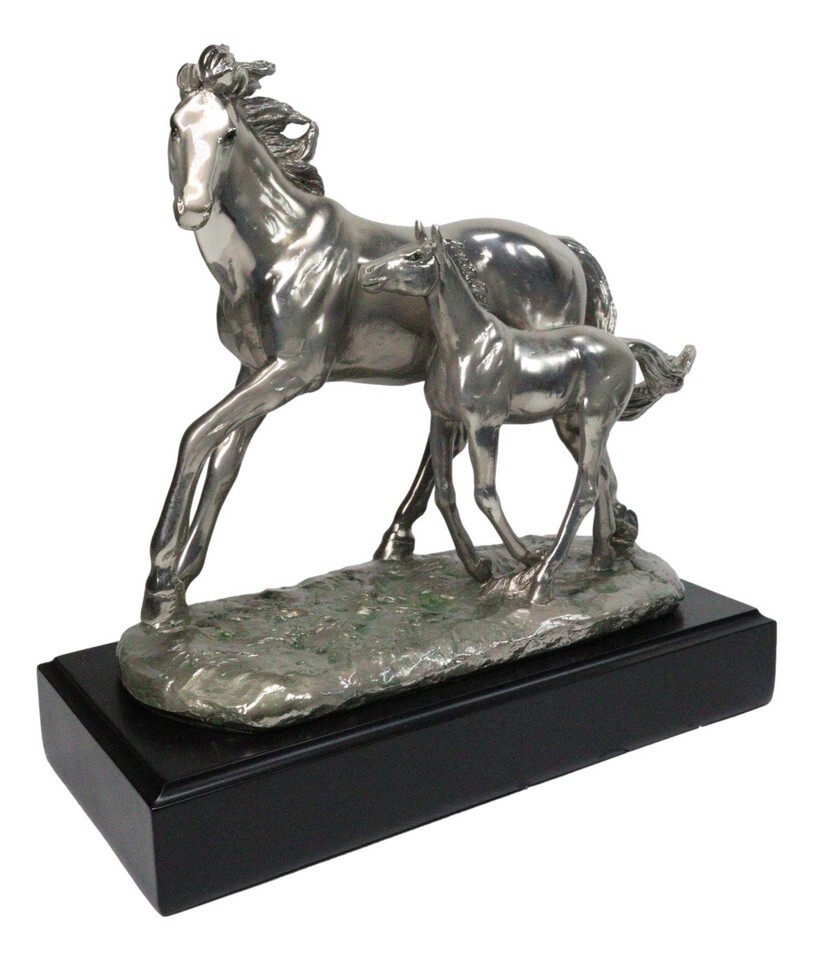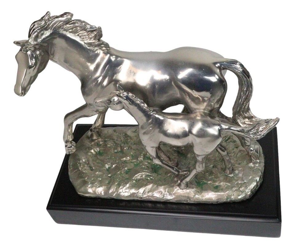 ? This Horse And Foal Figurine is made of the highest quality resin, undergoing the process of chrome silver electroplating giving it a uniform shine on the inside as well as the surface of the figurine.