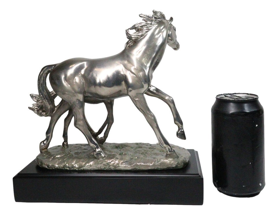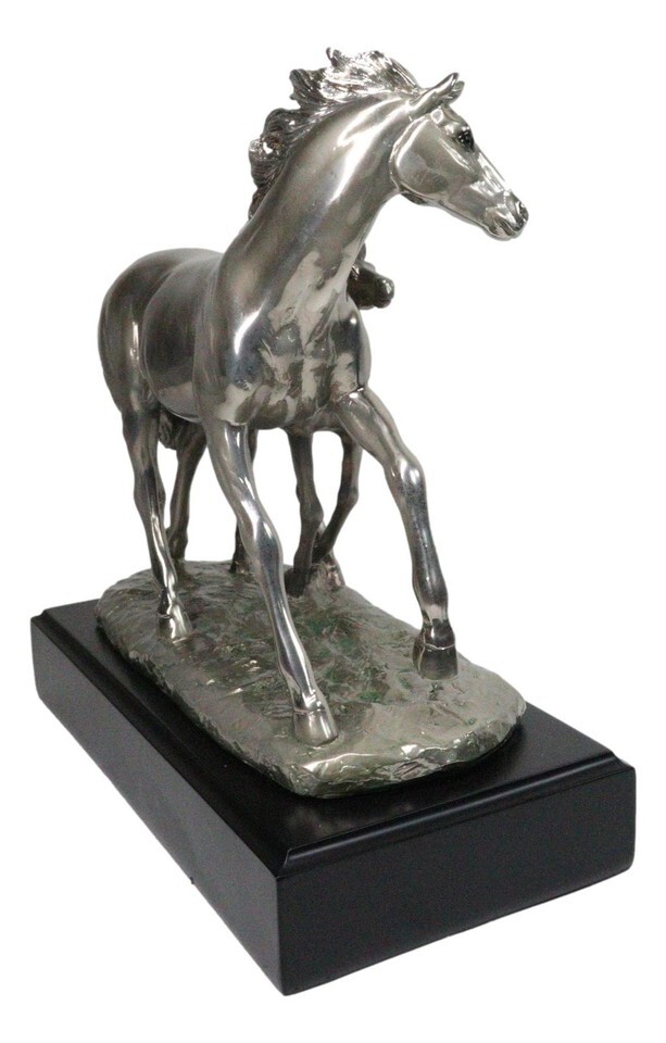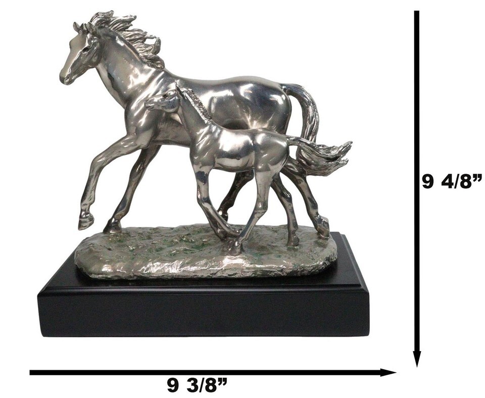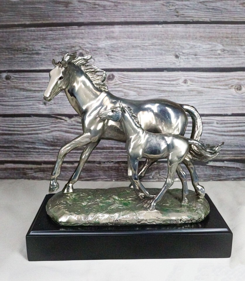 Western Horse and Foal Chrome Electroplated Resin Figurine With Museum Base