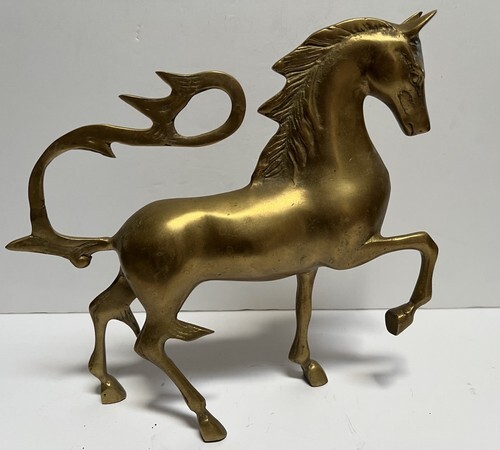 ? This Horse And Foal Figurine measures 9.5" tall (including its base), 9.25" long and 4.5" deep approximately. It weighs about 4 pounds.
