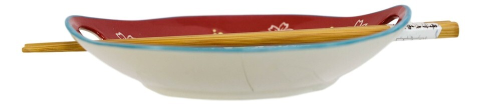 ? This Colorful Designer Appetizer Coupe Plate/Flat Bowl With Chopsticks Set is made of ceramic and bamboo. Our traditionally crafted pottery are made of the highest quality ceramic available and fired at a high temperature to maximize the strength of the ceramic, making them superior to other ceramics in the market. Our pottery are more resistant to cracks, stains, and scratches. Our ceramic is food safe and contain no lead or cadmium.