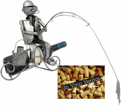? Store your unfinished vintage is a whole new light with this fisherman bottle holder sculpture. After a refreshing fishing session, the fisherman carries his fishing rod with his catch of the day. He will carry your wine bottle too and your guests will catch on quickly that drinking wine while fishing is the most relaxing pastime to have! A very welcome gift to all fishermen/women that you know too!