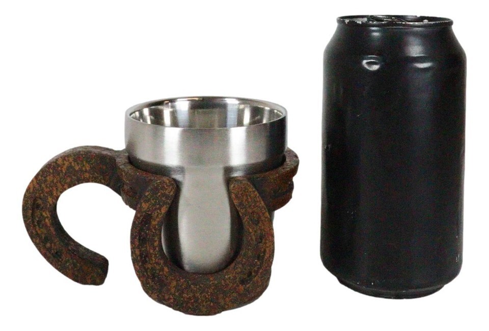 ? This Lucky Horseshoes Mug is made of high quality resin with stainless steel liner cup, individually hand painted and polished. Color Tone May vary slightly from pictures.