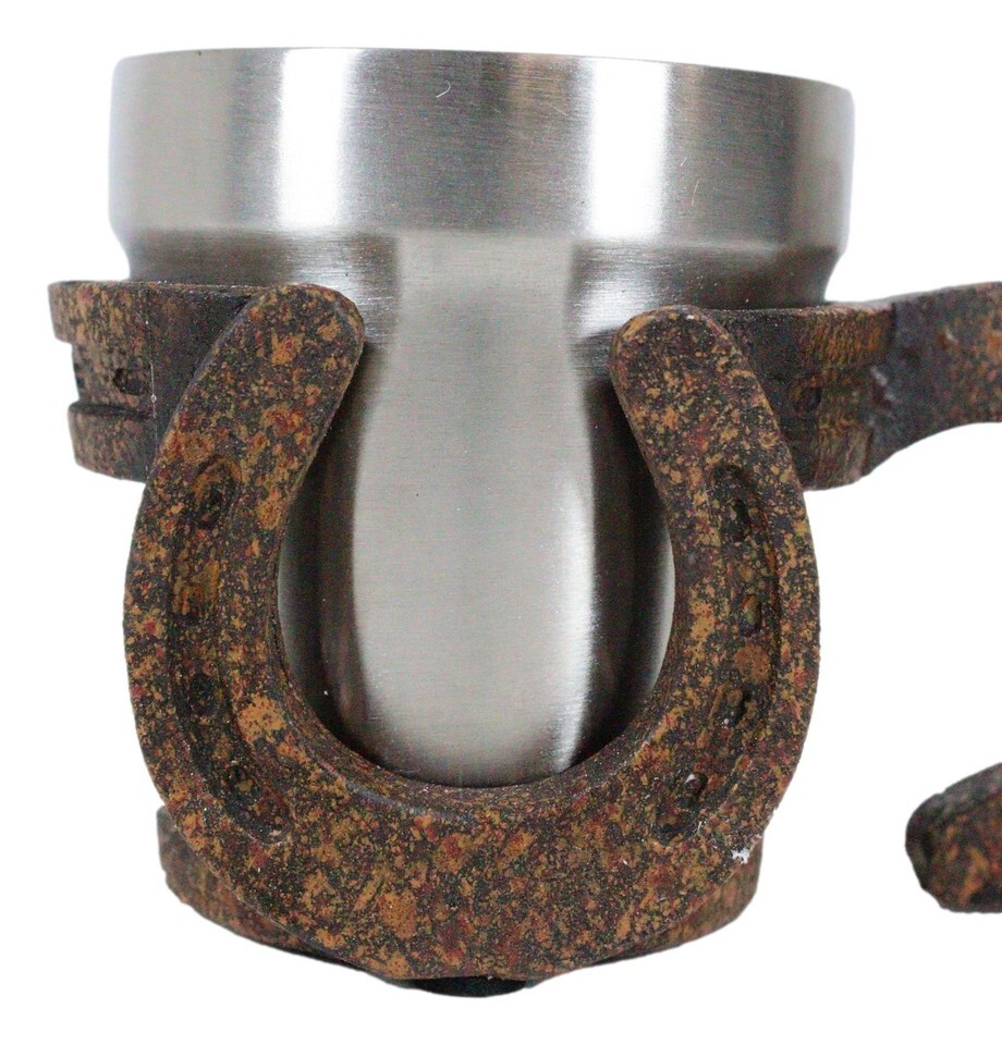 ? Elevate your drinking experience with this artistic 3D mug, featuring multiple horseshoes formed out to a mug with handle. An easy stylish gift for that cowboy or western style fan that is in your shopping list.