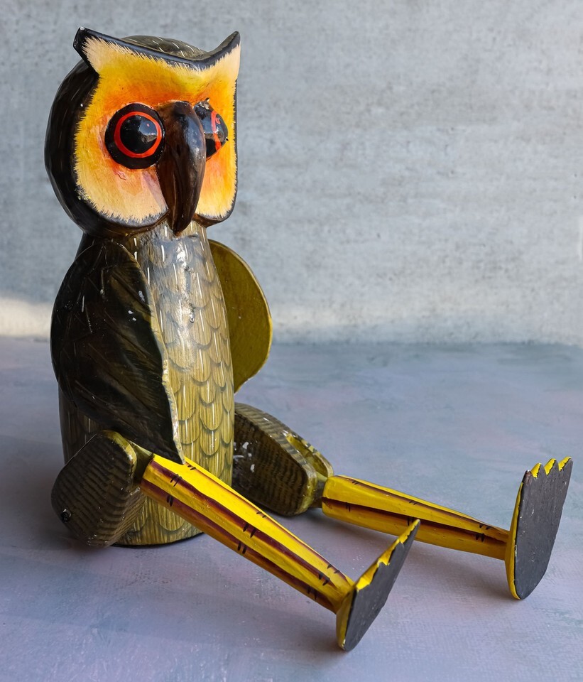 This owl puppet is made of Albesia wood, hand painted and polished individually. Because each figurine is hand carved (handicraft) and crafted out of natural wood, some variations in design and finish are a norm.