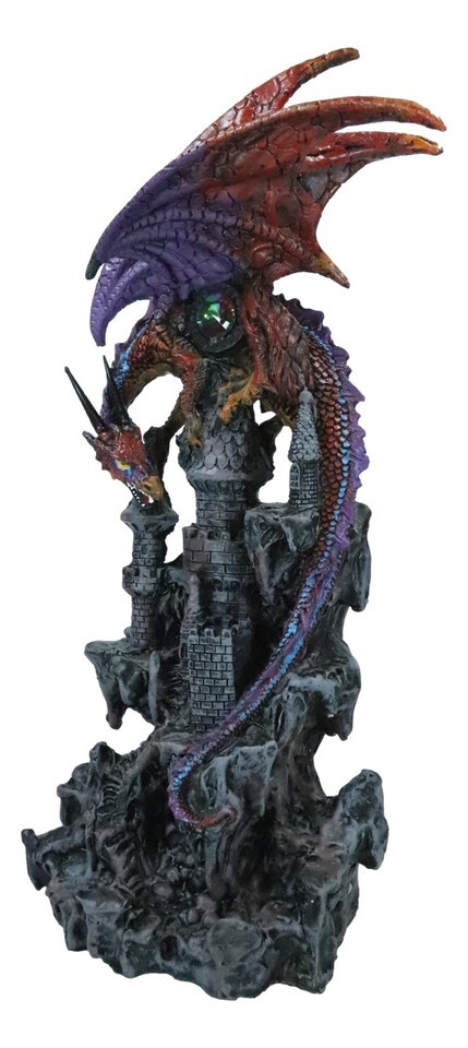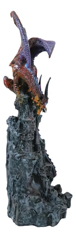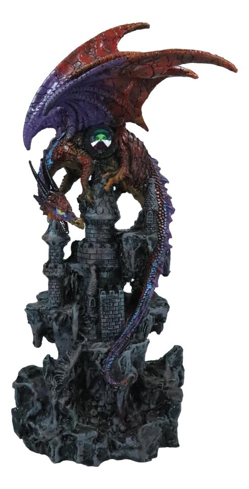 Ebros Red Behemoth Dragon Protecting Castle With Precious Gemstone Figurine 12.5"H