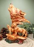 ? This Wolf Spirit figurine is an amazing inspirational and spiritual gift for a loved one or a striking decor piece for any room. Each figurine showcases the wolf's majestic bearing, brindled fur and noble expressions. An alpha wolf bust is howling at the moment as the focal point on the sculpture with a full bodied wolf beneath the bust descending from a rocky slope. The sculpture is topped off with a black pedestal base to give it a beautiful museum gallery look.