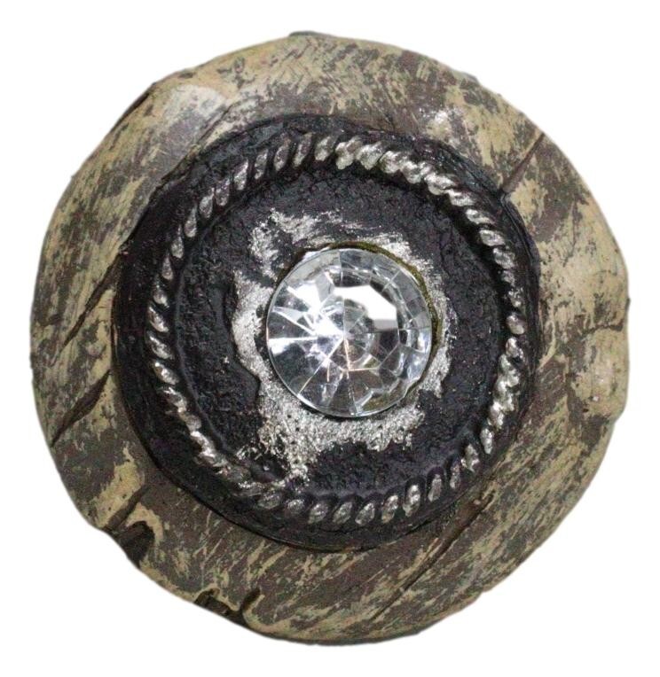? Western decor is all about spunk and spirit, bringing together the desert beauty of the southwest and all its inhabitants with rugged cowboy charm and rustic good looks. These cabinet door knobs feature faux distressed wood base with a large rhinestone crystal in the center.