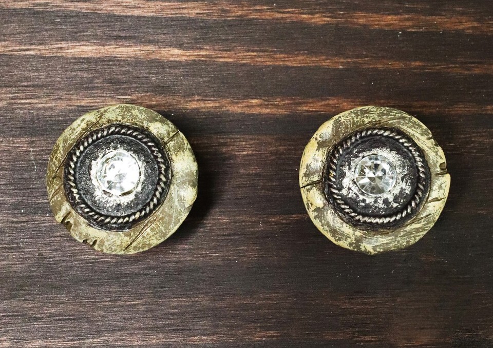 Set Of 6 Western Rustic Faux Wood Rhinestone Crystal Cabinet Door Pull Knobs