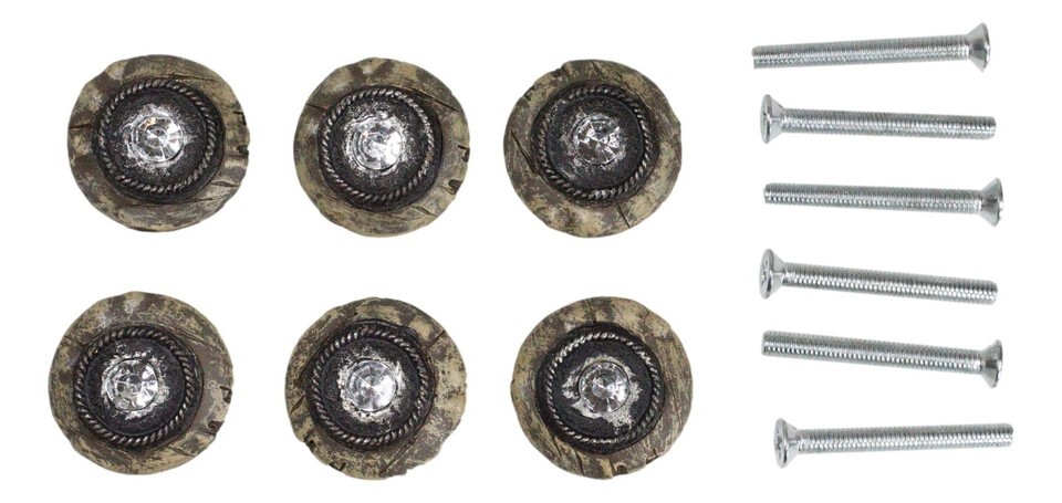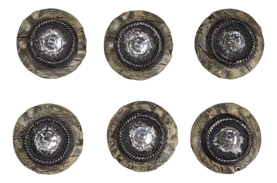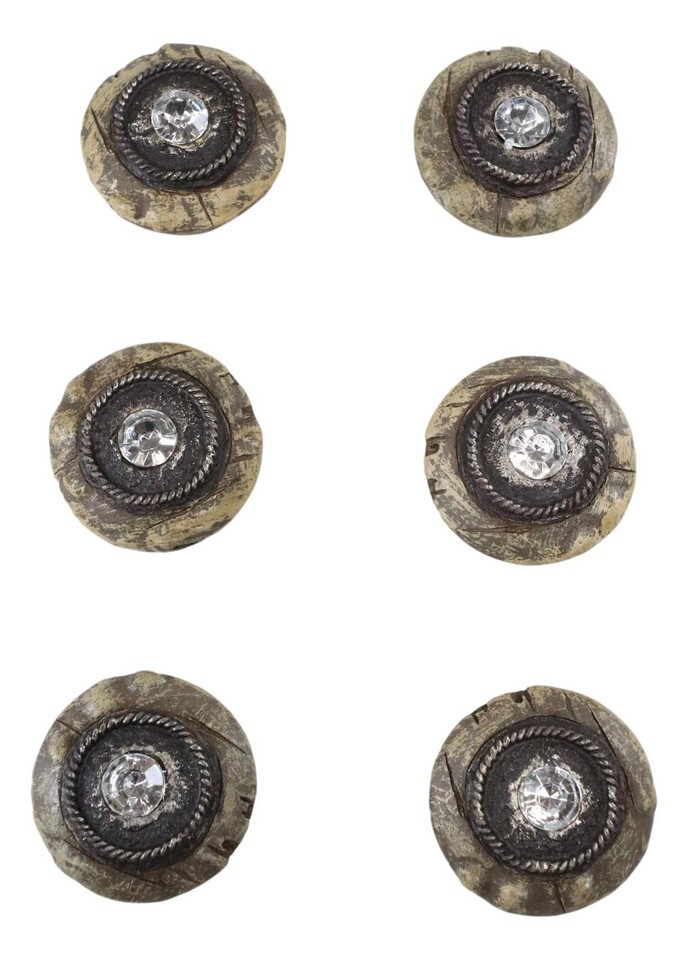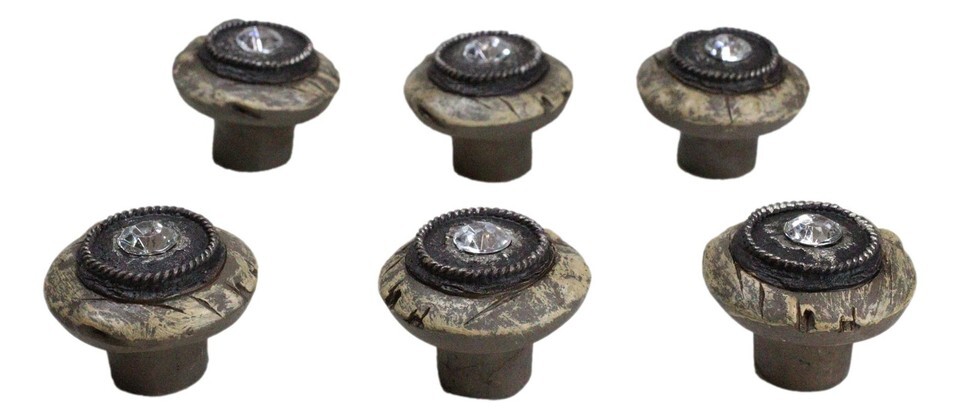 Ebros Set Of 6 Western Rustic Faux Wood Rhinestone Crystal Cabinet Door Pull Knobs