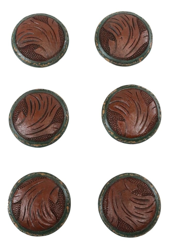 Set Of 6 Western Rustic Faux Tooled Leather Green Borders Cabinet Door Knobs