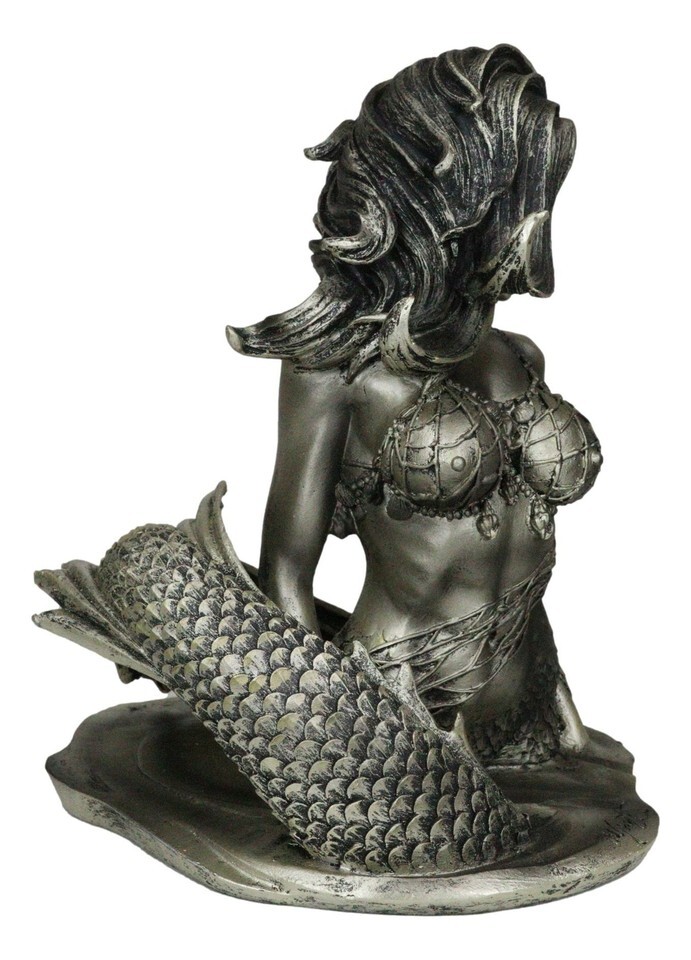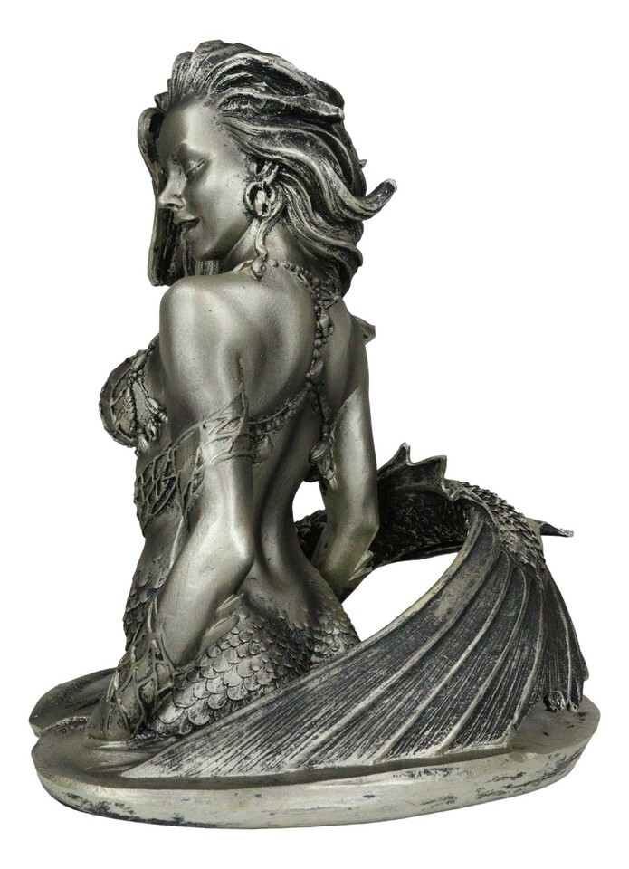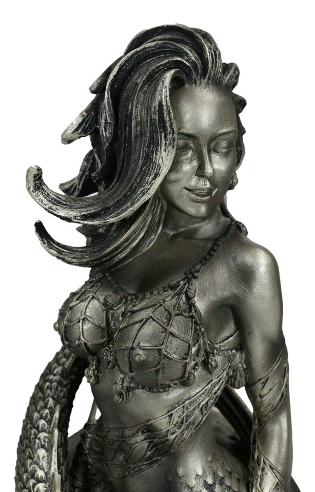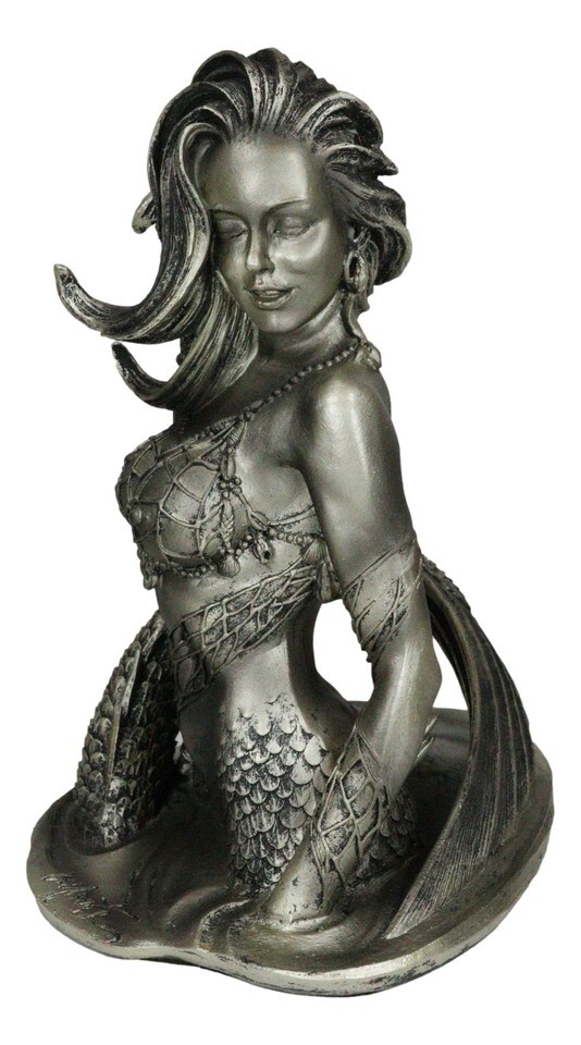 ? This Seductive Siren Mermaid figurine is made of designer composite resin, hand painted and polished individually with bronze patina finish.