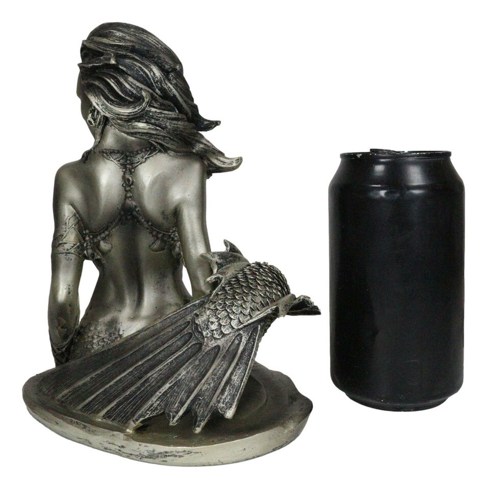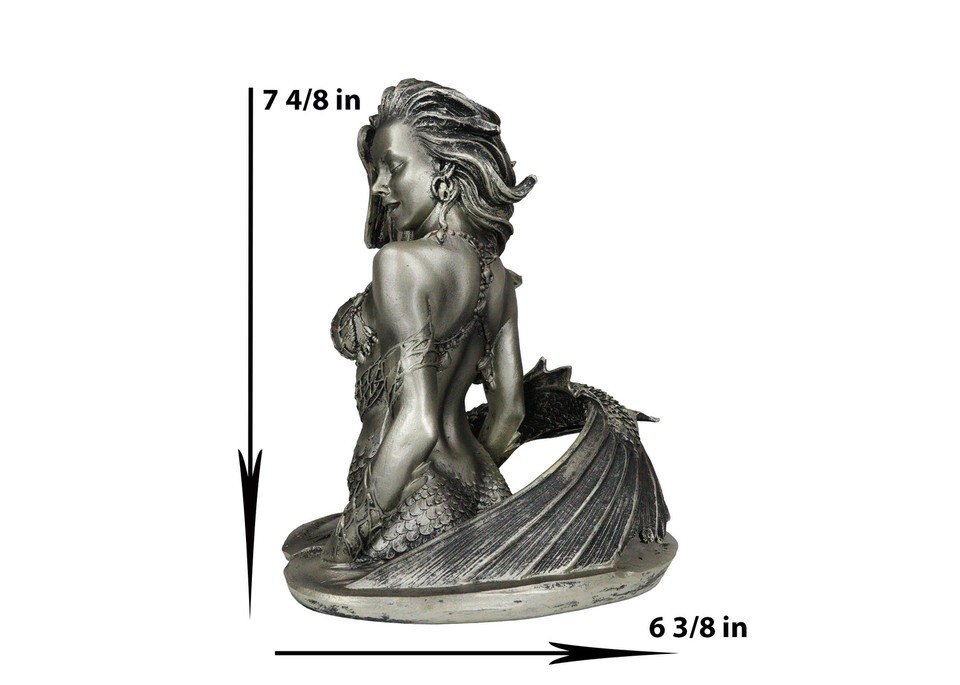 ? This Seductive Siren Mermaid figurine measures 7.5" tall, 6.25" wide and 5" deep approximately. The sculpture weighs about 1.25 pounds.