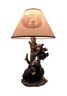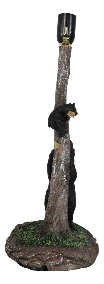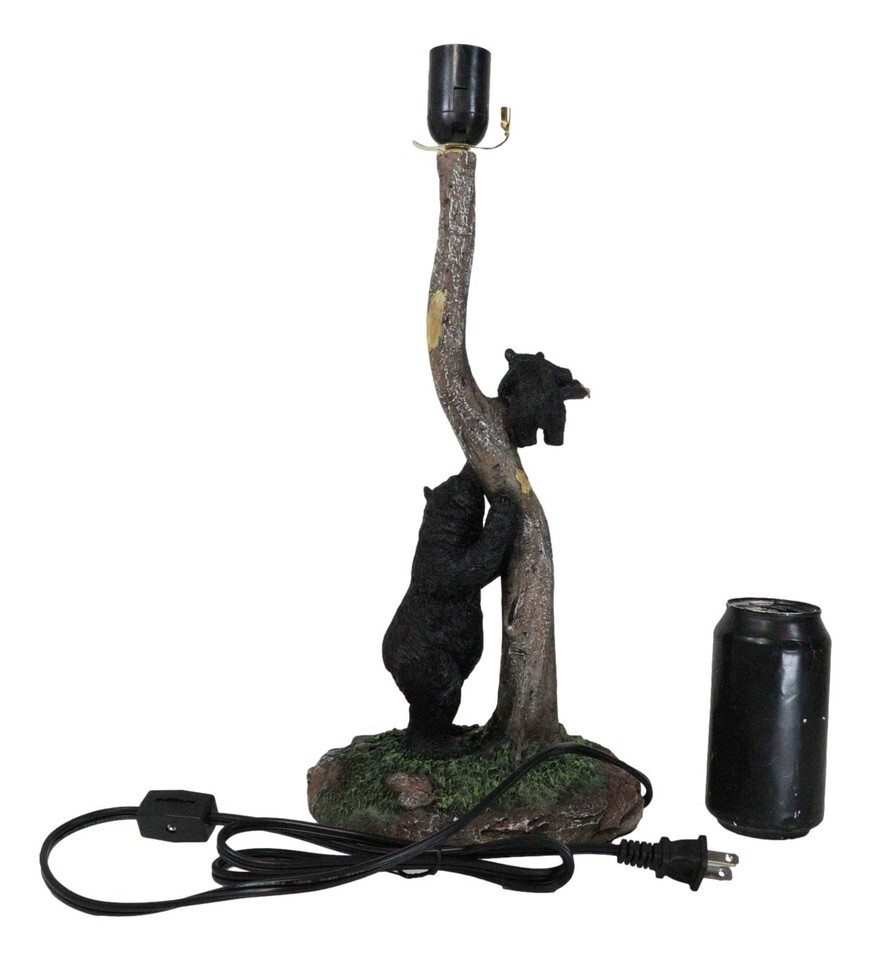 Rustic Black Mother Bear Playing With Cub Hanging On Tree Branch Table Lamp