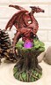 ? A vicious metallic red fire dragon perches atop a burning volcanic rock tower. Magma and lava fills the rock and you fire is engulfing the base of the sculptural rock formation. Turn the LED light switch on and the acrylic flame will glow steadily for a dramatic effect in the dark.