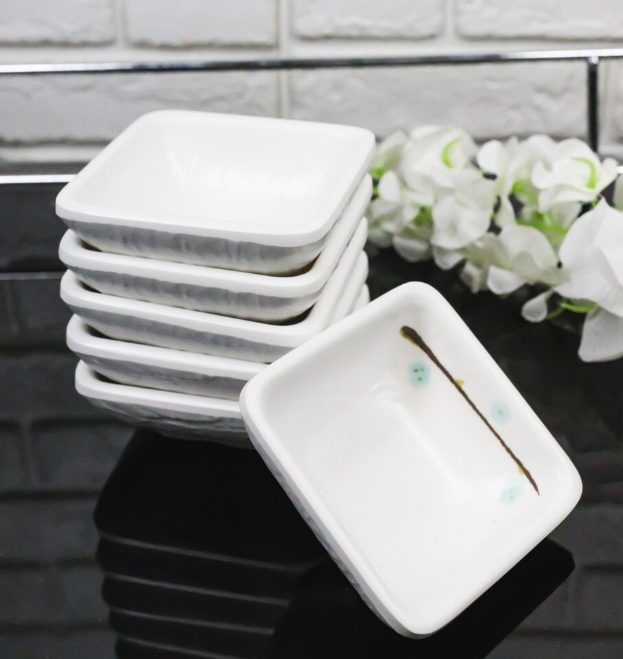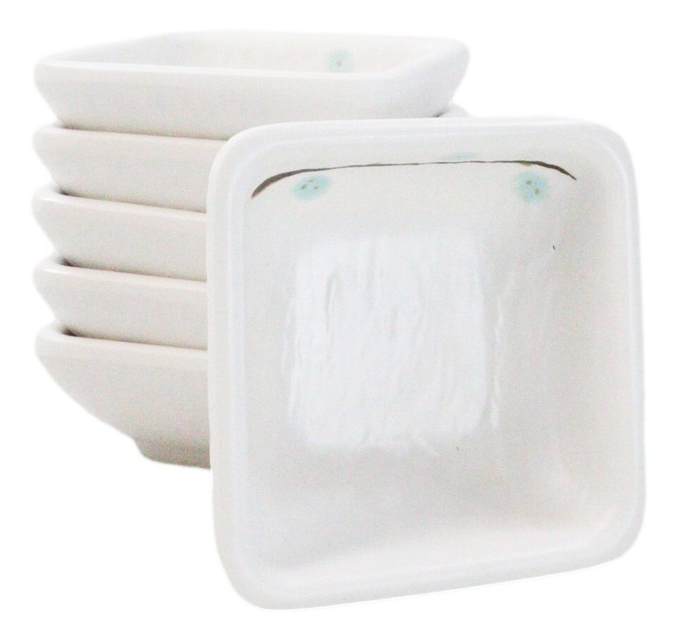 Pack Of 6 Square Yukino Hana Snowflakes Melamine Condiments Dipping Sauce Dishes
