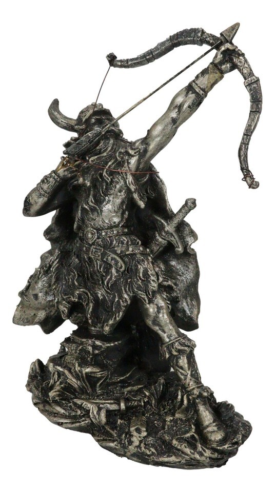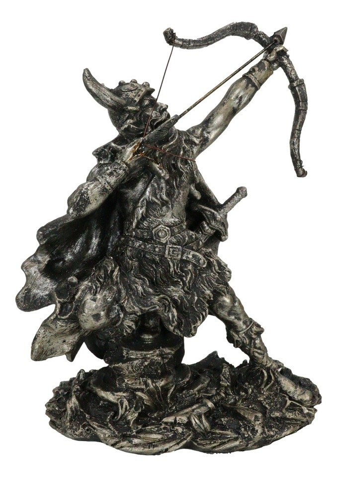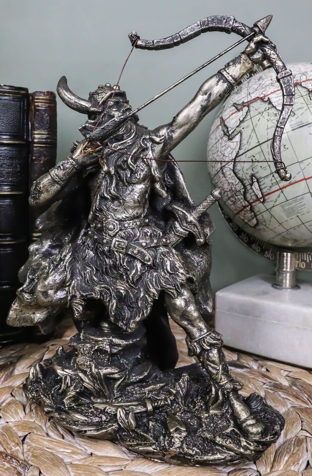 Ebros Viking Berserker Warrior With Bull Horn Helmet Shooting Arrow With Bow Figurine