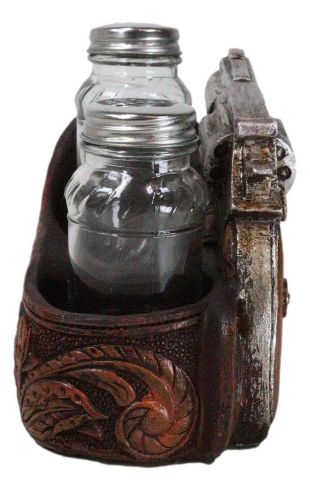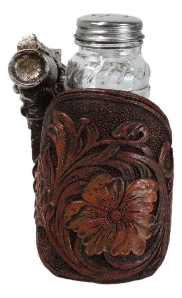 Old World Western Cowboy Gun Faux Leather Holster Salt Pepper Shakers Holder Set