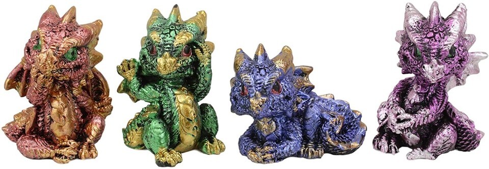 ? These miniature dragon sculptures are made of designer composite resin, hand painted and polished individually.