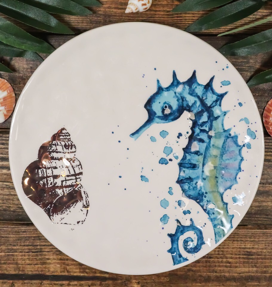 Ebros Pack Of 2 Nautical Marine Blue And White Seahorse Ceramic Wall Decor Plates