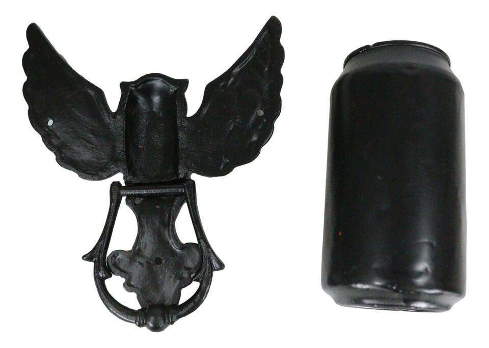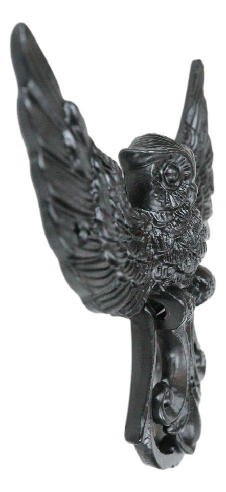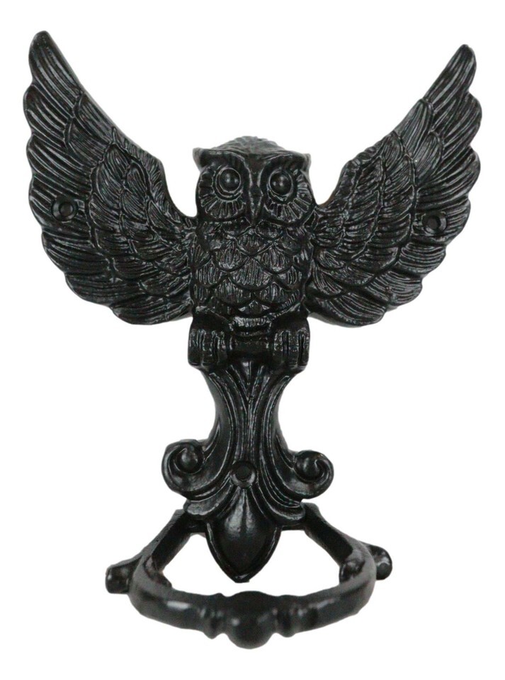 ? A winged sage born of turn-of-the-century decorative trends announces company with a hearty rap of its hefty knocker. Antique black finish creates a sharp contrast with your door.