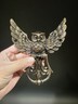 Metal Rustic Flying Wise Great Horned Owl Fleur De Lis Door Knocker Sculpture