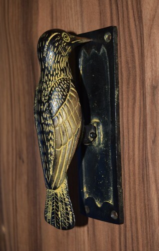 ? This Rustic Owl Bird Door Knocker is made of aluminum, coated in black powder patina, hand painted and polished individually. Create an inviting doorway with this whimsical owl door knocker.