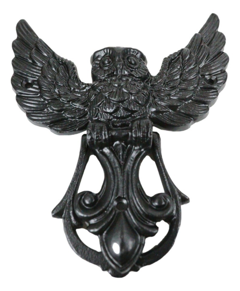 Ebros Metal Rustic Flying Wise Great Horned Owl Fleur De Lis Door Knocker Sculpture