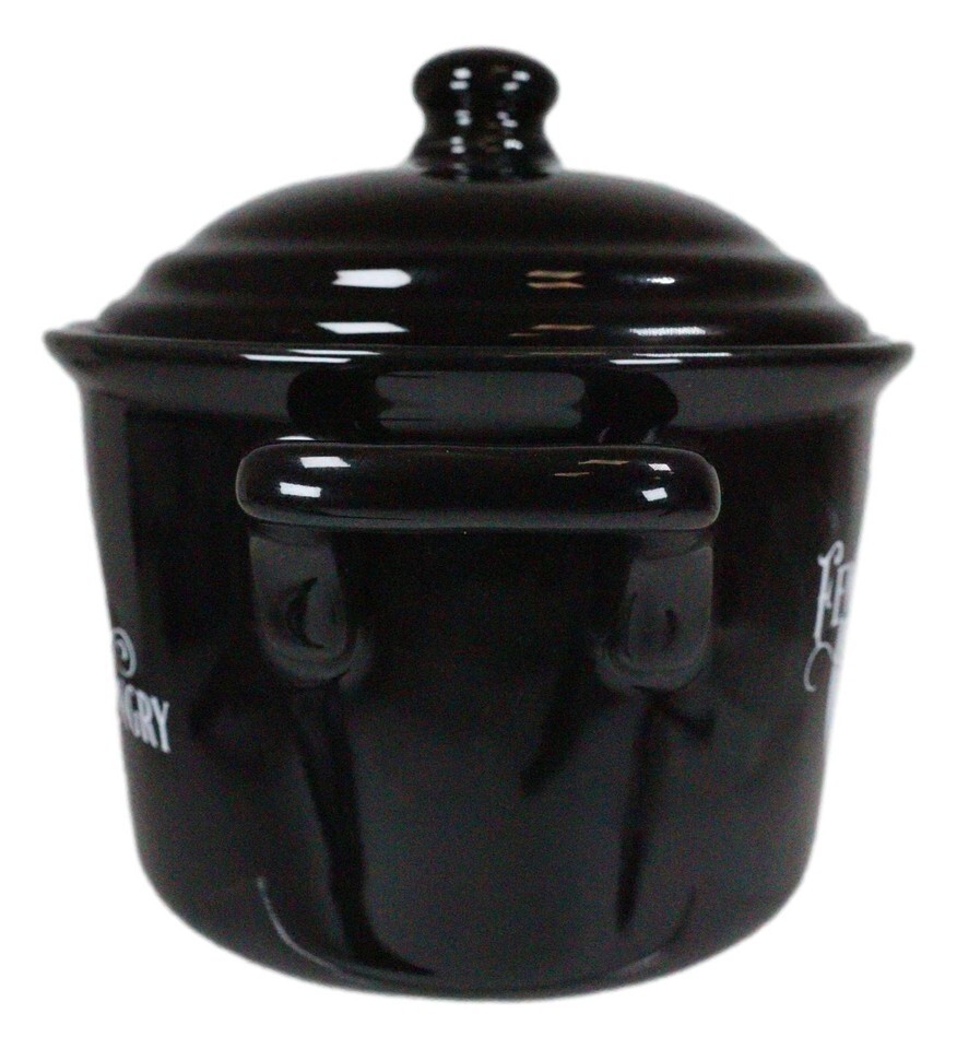 Ebros Wicca Full Moon Black Cat Feline Hungry Fine Bone China Bowl With Spoon And Lid