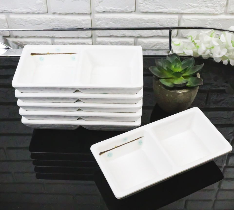 Pack Of 6 Yukino Hana Snowflakes Melamine 2 Partition Condiments Sauce Dishes