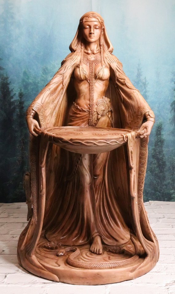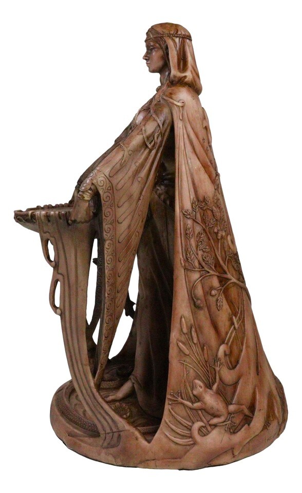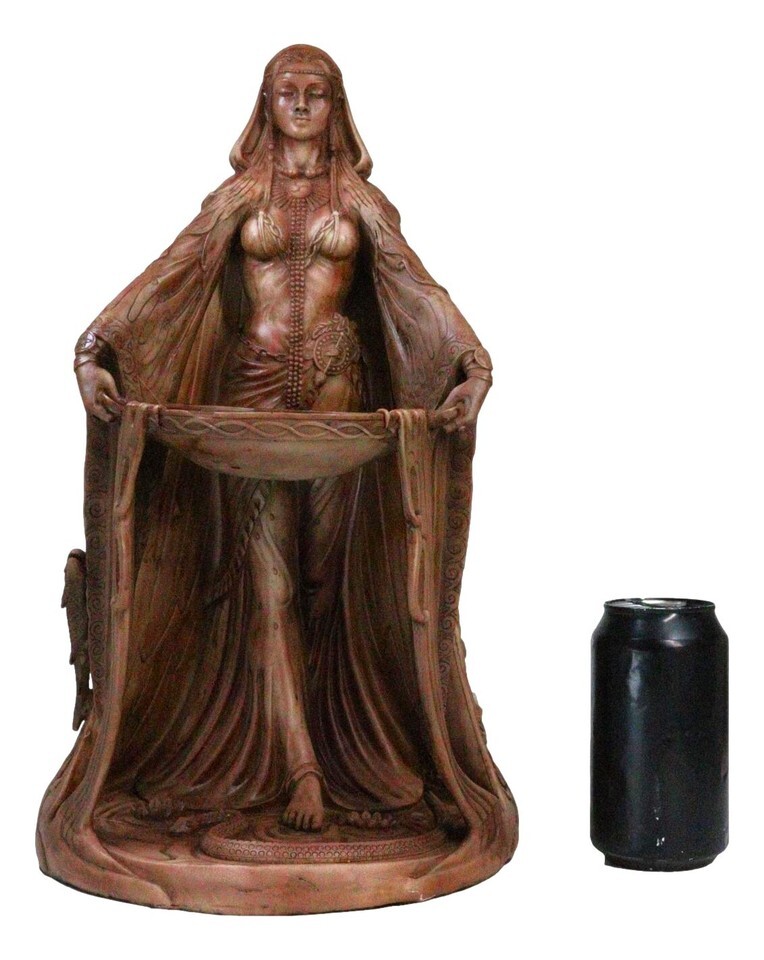 ? This Celtic Irish Goddess Danu Figurine is made of designer composite resin, hand painted and polished individually. Color tone may vary from pictures.