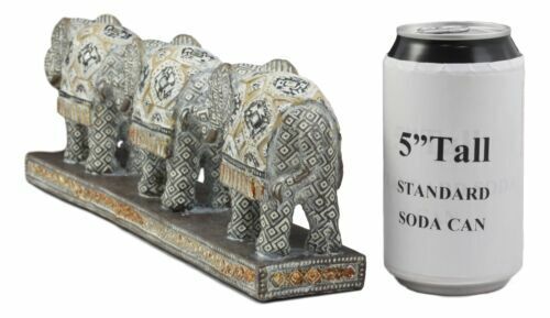 Ebros Feng Shui 3 Silver Geometric Elephants Statue W/ Tapestry Blanket Design