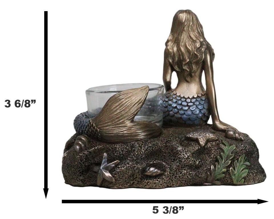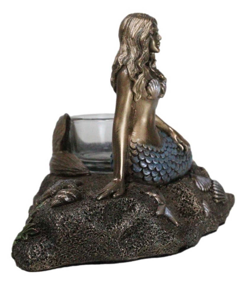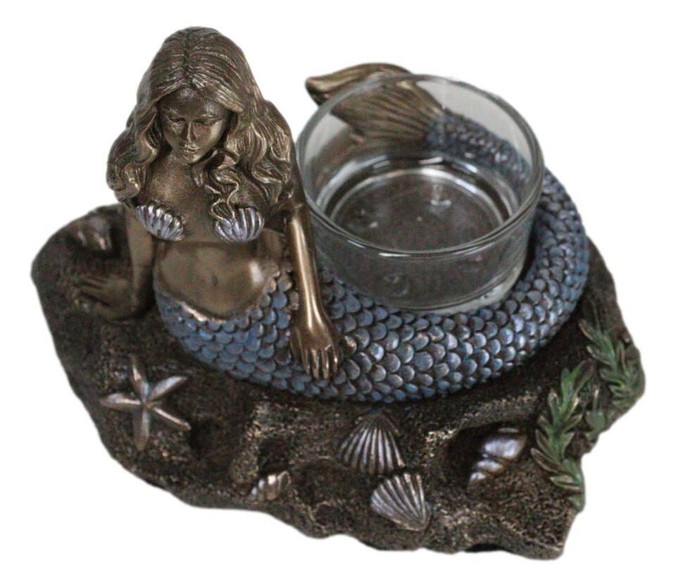 ? Bring the magic of the sea into your home with this Sea Siren Mermaid Maiden Votive Candle Holder. Adorned with intricate details of a mermaid surrounded by shimmering sea stars and delicate shells, this enchanting piece captures the spirit of the ocean. Perfect for setting a serene, coastal atmosphere, it's an ideal votive candle holder to add a touch of mythical allure to your space.