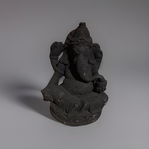 ? This Ganesha Sculpture measures approximately 6.5" tall, 3.75" long and 3.5" deep. It weighs about 11 ounces.