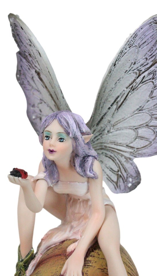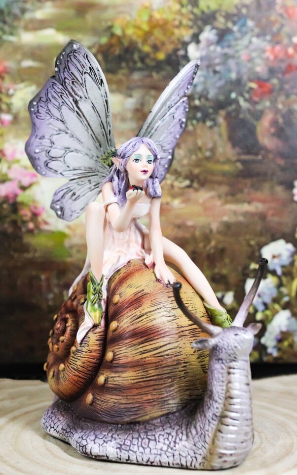 Fantasy Purple Elf Pixie Fairy Ladybug Sitting On Giant Snail Mollusk Figurine