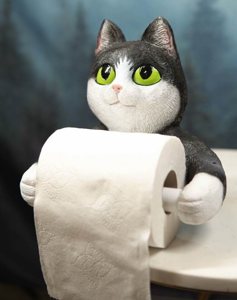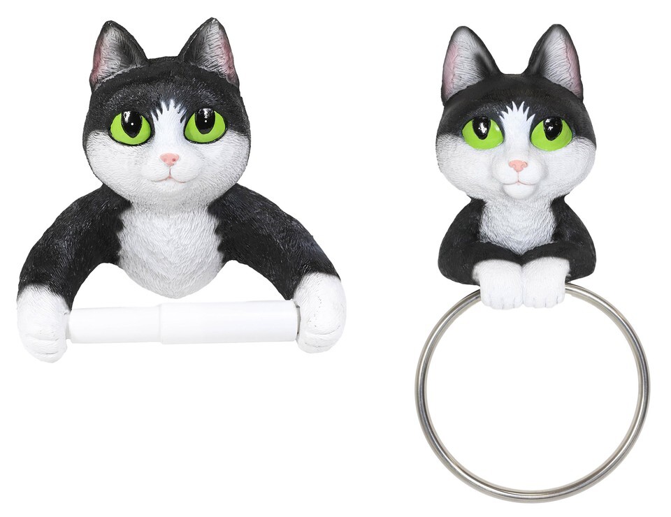 ? Could your bathroom use a bit of charm and whimsy? This adorable feline tuxedo cat is providing top notch 'mitten' service for you and your guests! These purrfectly adorable sculptures will hold your toilet papers and hand towels in unexpected ways. They will be stars to your guests and family members that come and visit your bathrooms.