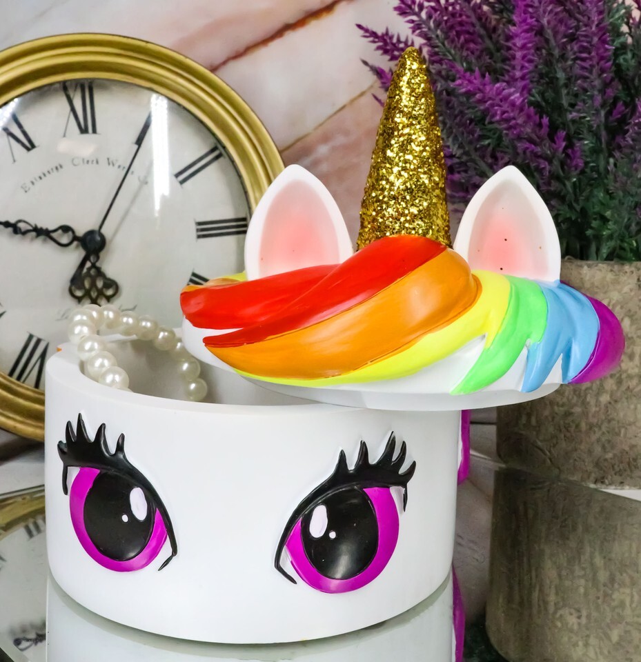 Enchanted Fantasy Rainbow Unicorn Stargazer Trinket Decorative Jewelry Box Decor