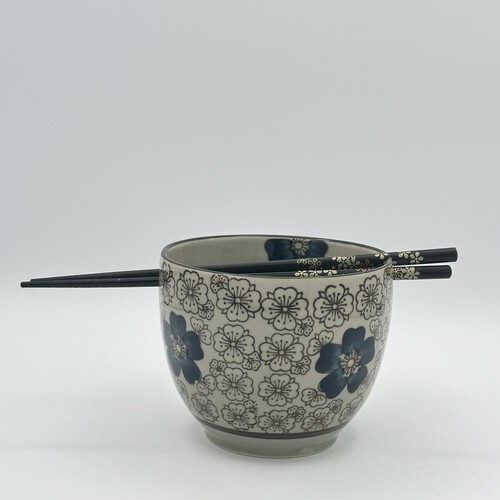? This Large Artistic Ramen Udon Noodles Soup Bowl With Chopsticks Set is made of ceramic and bamboo.