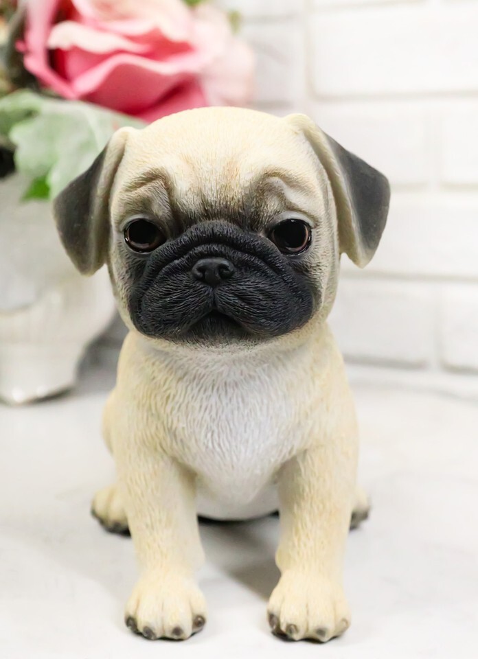 Realistic Lifelike Adorable Sitting Pug Dog Puppy Home Decor Figurine Pet Pal